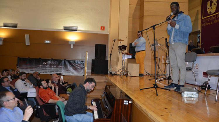 El alumno del Máster Universitario en Investigación e Innovación Educativa de la Universidad de Castilla-La Mancha (UCLM) y ganador de la tercera edición del concurso televisivo Got Talent, César Brandon, ha cerrado la jornada ‘Música, emoción y aprendizaje: metodología-arte’ que acoge la Facultad de Educación, recitando, acompañado al piano por el profesor de este centro Juan José Pastor, los poemas ‘Miedo a la izquierda’ y ‘El espacio’.
