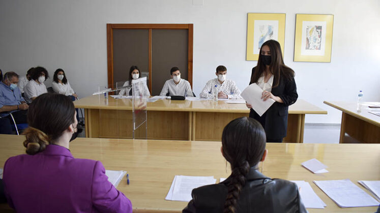 El acto de presentación de los equipos ha contado con la presencia en línea de la vicerrectora de Estudiantes, Ángeles Carrasco, y de los decanos y decana de las facultades de Ciencias Económicas y Empresariales; Derecho; y Relaciones Laborales y Recursos Humanos: Francisco Escribano, Diego Gomez y Aurora Galán, respectivamente, que se encontraban en la sala, junto al jurado del certamen y un grupo de profesores de los institutos participantes.