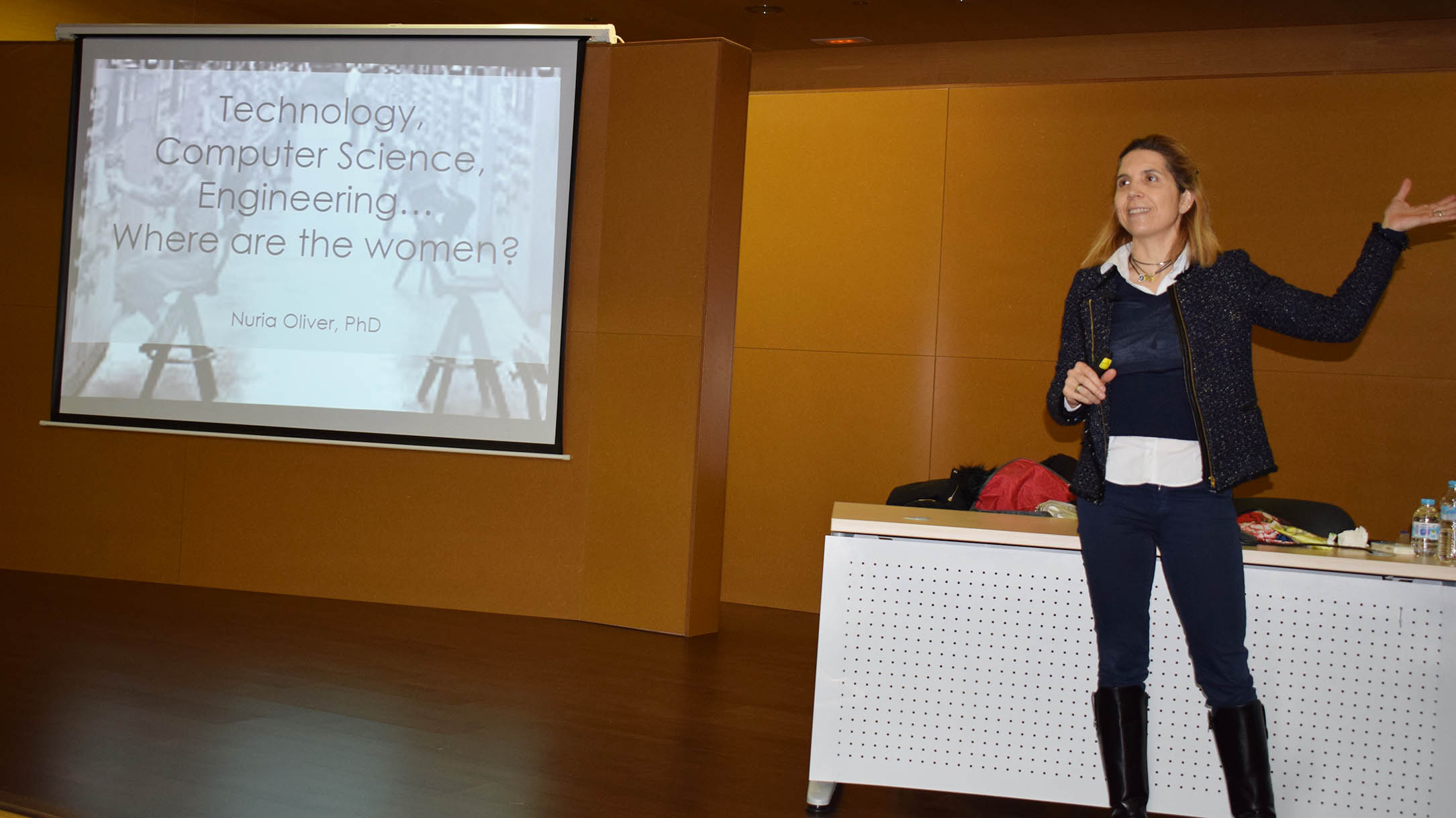 La ingeniera en telecomunicaciones e investigadora Nuria Oliver Ramírez ha participado en el programa de actividades que desde la Universidad de Castilla-La Macha (UCLM) se ha organizado con motivo del Día Internacional de la Mujer y la Niña en la Ciencia. En esta ocasión, Nuria Oliver ha impartido una charla en el Campus de Albacete con el objetivo de hacer visible que faltan mujeres en el ámbito tecnológico y de motivar a las nuevas generaciones de chicas a elegir una carrera en este campo. Durante el acto, la invitada ha formado parte de una mesa redonda en la que han participado jóvenes investigadoras.