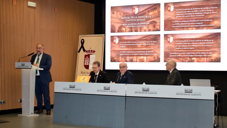 El encargado de hacer entrega del diploma y de la Insignia de Oro de la institución fue su presidente, Pedro Tárrega, quien habló de la relación entre ambas instituciones como “una alianza estratégica, estable, fructífera y orientada al progreso científico; a la mejora de la práctica médica y al servicio la sociedad de castellanomanchega”, señaló.