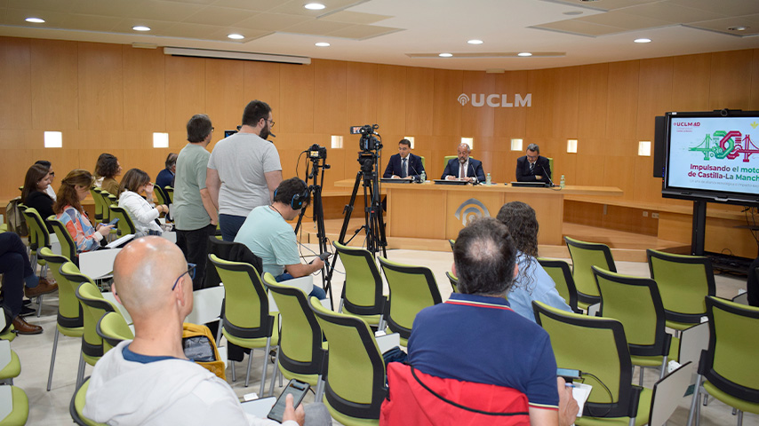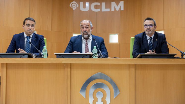 El acto, celebrado a modo de rueda de prensa en la sala Ramón Varón de la Escuela Internacional de Doctorado -EID-, ha estado presidido por el rector de la UCLM, Julián Garde; junto al director general de Globalcaja, Pedro Palacios; y el vicerrector de Economía y Planificación Estratégica, Francisco José Sáez, encargado de presentar el documento.