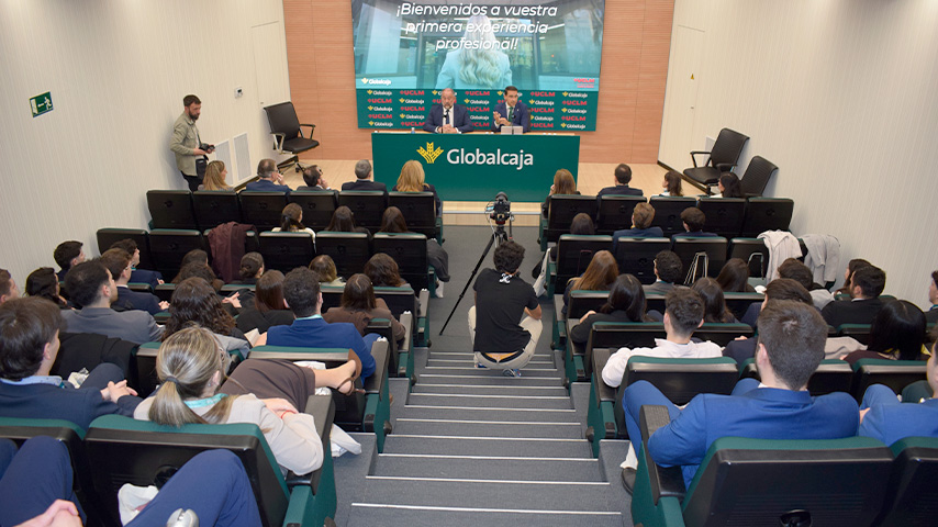 El acto de recepción ha contado con la participación del rector de la UCLM, Julián Garde, y del director general de Globalcaja, Pedro Palacios, quienes han trasladado a los estudiantes la importancia de aprovechar esta experiencia formativa como primer paso en su desarrollo profesional.